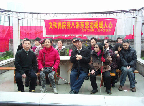 1月27日是传统的腊八节,按照风俗习惯,这一天要做腊八粥,腌制腊八蒜。为了让老年盲人朋友过上温暖的腊八节,区残联组织近四十名盲人朋友相聚盲协,品尝由成都文殊院赠送的腊八粥,盲人朋友们喝着腊八粥,畅谈着美好生活,过了一个有意义的传统节日。