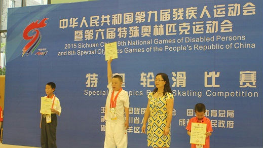 在刚刚结束的全国第九届残运会暨第六届特奥会轮滑项目上,川师大特教实验学校--区特殊教育学校特殊儿童高昊天斩获轮滑项目1金1银1铜的优异成绩(男子500米轮滑第一名、男子300米轮滑第二名、男子2X100米轮滑第三名),载誉而归。