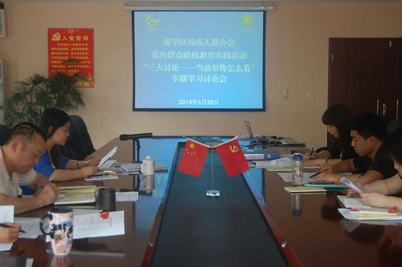 5月28日,区残联组织全体党员干部召开党的群众路线教育实践活动“三大讨论—当前形势怎么看”专题学习讨论会。在集体学习王东明在全省市厅级主要领导干部读书班上的讲话精神“深入学习领会习近平总书记系列重要讲话精神 以更大决心和勇气把四川改革发展事业推向前进”后,党员干部纷纷表示:面对世情、国情、党情的深刻变化,作为一名残联党员干部一定要以群众路线教育实践活动为契机,紧紧扭住反对“四风”,从残疾人最关心、最迫切的问题入手,着力解决关系残疾人切身利益问题,解决残疾人“最后一公里”问题。目前,重点解决重度残疾人参加城镇职工养老保险工作,尽快兑现残疾人各项“优待”政策,为成华经济社会发展履职尽责。