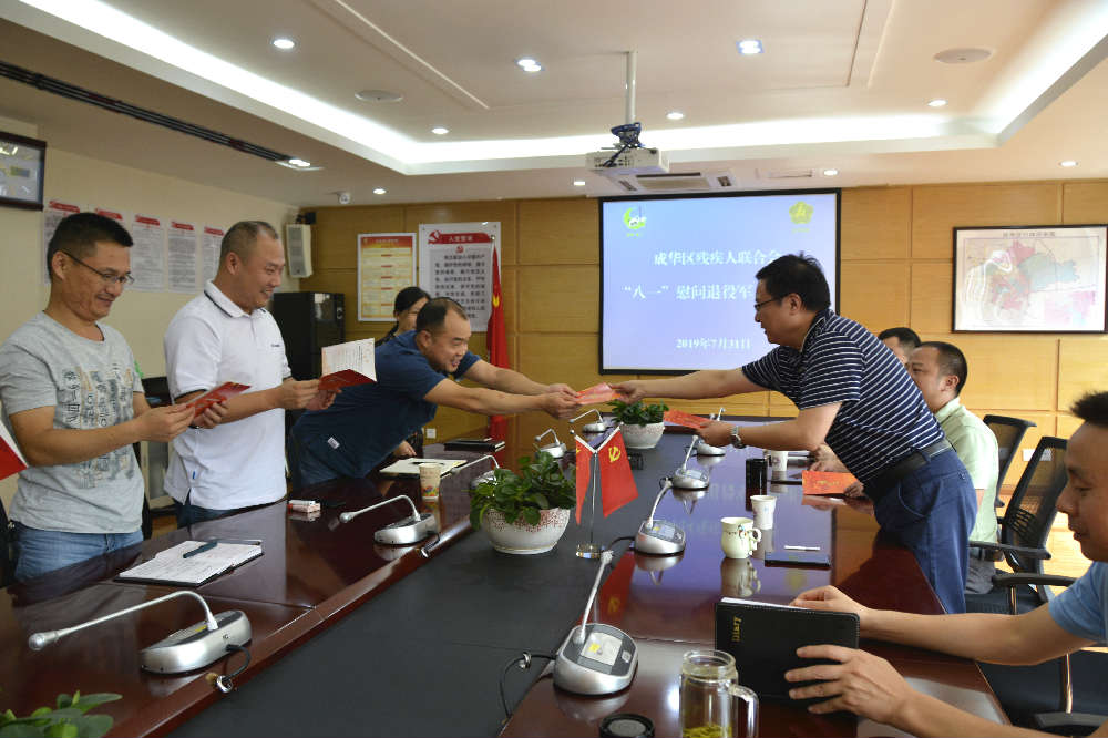 在“八一”建军节来临之际,2019年7月31日上午,成都市成华区残疾人联合会召开“八一”慰问退役军人座谈会,庆祝中国人民解放军建军92周年。区残联党组书记、理事长韦华出席座谈会。区残联机关全体转业退役军人参加座谈会。
