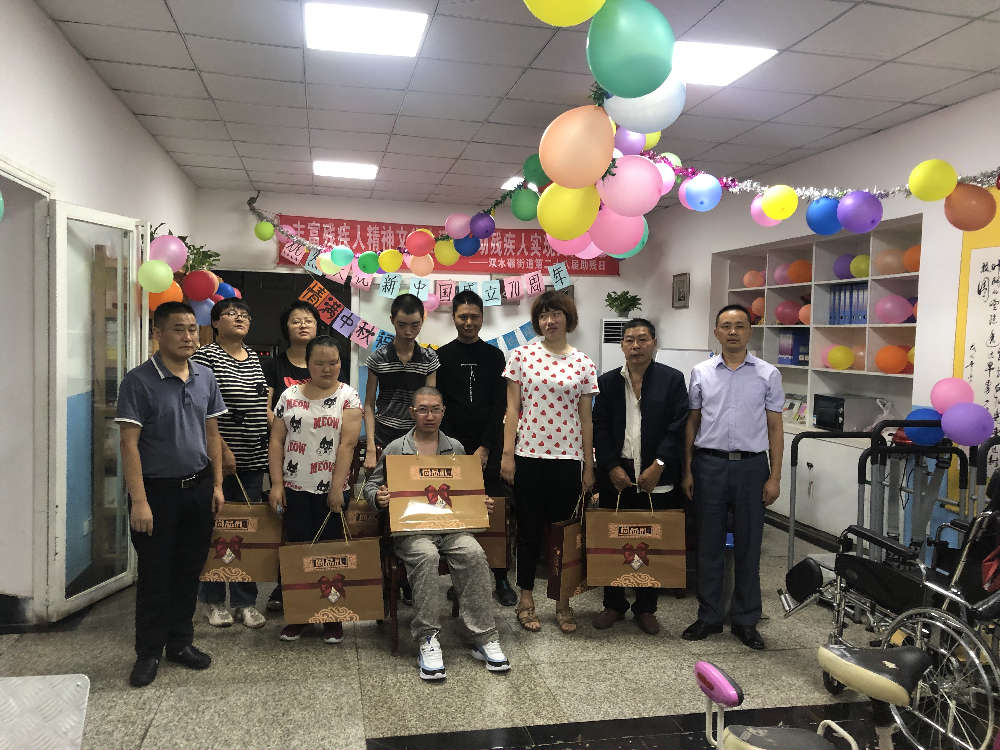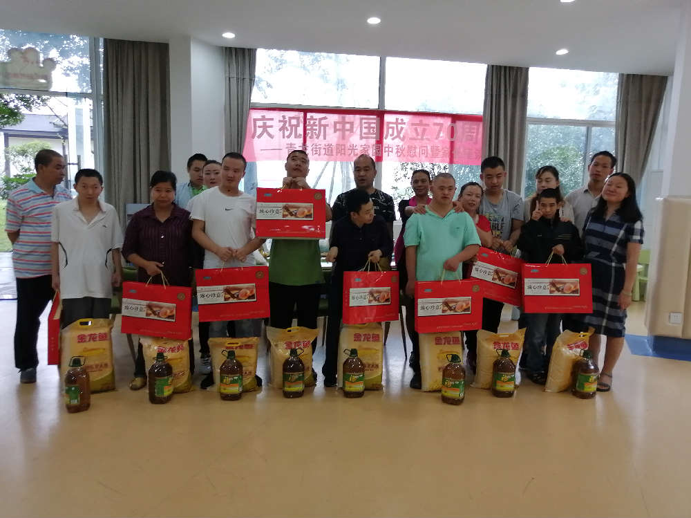 9月12日,双水碾街道组织“阳光家园”举行了热烈而且有意义的“情满中秋·福满全家”暨家长座谈会,热烈庆祝新中国成立中华人民共和国成立70周年主题活动。双水碾街道社建科长、残联理事长张全高参加主题活动并代表街道残联慰问了全体学员及其亲属,祝他们节日快乐,阖家幸福!同时,对学员亲属长期关心、支持和理解表示了衷心感谢!活动结束后,街道残联还为学员们发放过了节日小礼物,大家在欢声笑语声中圆满结束了这个特殊而有意义的中秋活动。