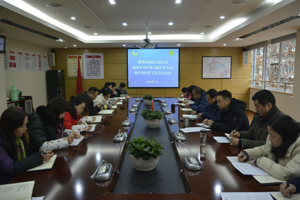 2020年1月9日,成都市成华区残联召开全体干部职工大会,专题传达学习中共成华区委七届九次全体会议暨区委经济工作会议精神,安排部署贯彻落实工作。区残联党组书记、理事长韦华出席并主持会议。区残联党组成员、副理事长张明波、严旭松出席会议。