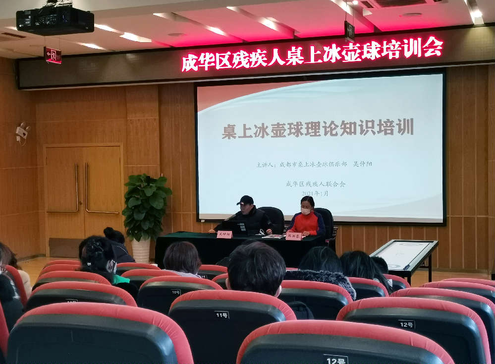 为了进一步加强残疾人文化体育工作,推动残疾人文化体育运动的发展,不断丰富广大残疾人朋友的文体生活,促进残健融合。按照成都市残联的统一安排部署,2021年1月20日下午,成华区残联组织开展了残疾人桌上冰壶球专场培训,并进行了体验活动。