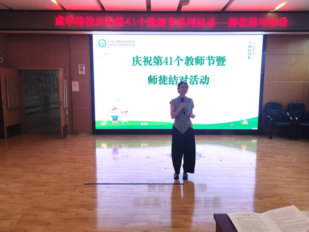 新教师朱春艳代表徒弟们表态:“作为新教师,我们深知自己在教学实践和班级管理方面还存在不足。今后定将虚心求教、勤学多问,不断提升专业素养,努力成为一名有温度、有智慧的特教人,为学校发展注入新活力。”