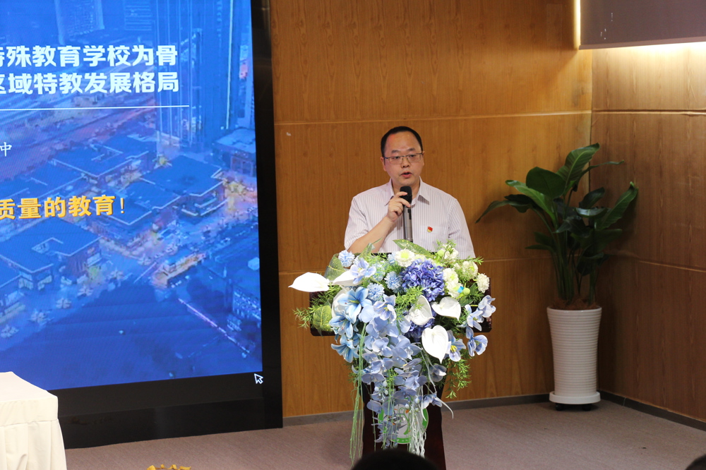 区教育局党组成员、纪检组组长蒲谦致欢迎辞,介绍了区域融合教育现状,期待借与北师大、华西二院等团队合作破解难题,并表态将加大投入、深化医教融合,保障教育公平。