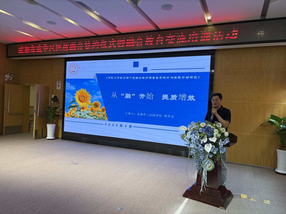 成都市二仙桥学校副校长郭中全分享了《片区工作坊引领下的融合教育课堂教学设计与实践行动研究》课题阶段性成果。