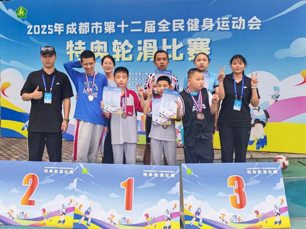 2025年10月10日,由成都市残疾人联合会主办,青羊区残疾人联合会与青羊区特殊教育学校共同承办,成都市同辉国际学校倾力支持的第十二届全民健身特奥轮滑比赛火热开赛。成华区特殊教育学校2名教练带领8名轮滑运动员踏上赛场。