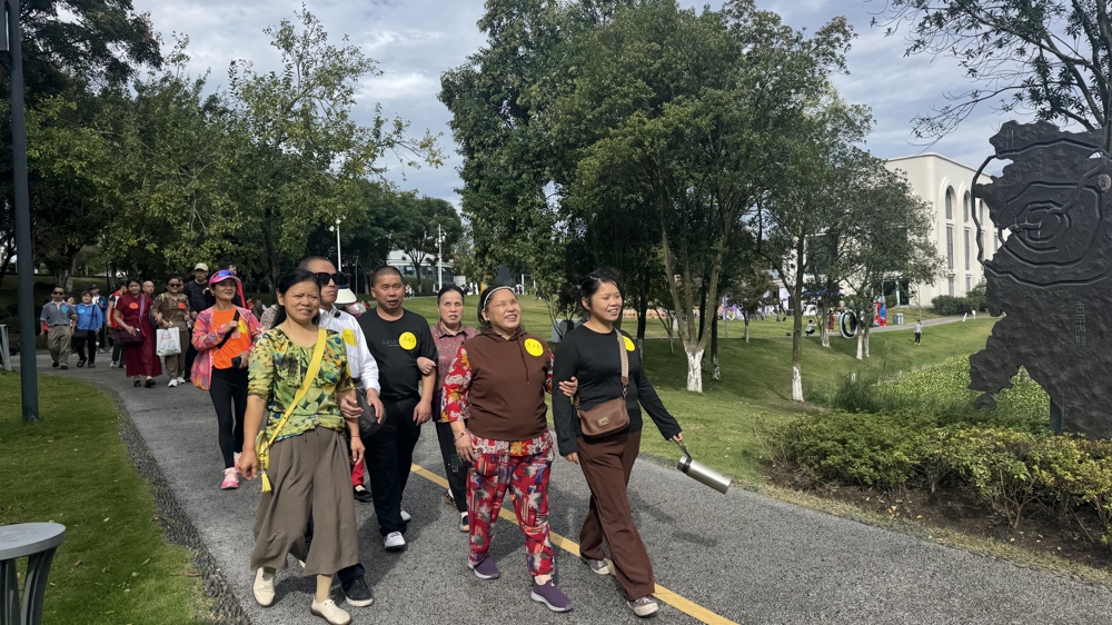 活动现场通过“一对一”结对陪伴的形式,志愿者协助视障朋友沿北湖生态公园栈道缓步前行,在确保安全的前提下,引导他们触摸自然、聆听秋声,感受户外运动的乐趣。健步走过程中,志愿者详细描述周围环境,帮助视障朋友构建“心灵图景”,展现了黑暗世界的五彩画卷。