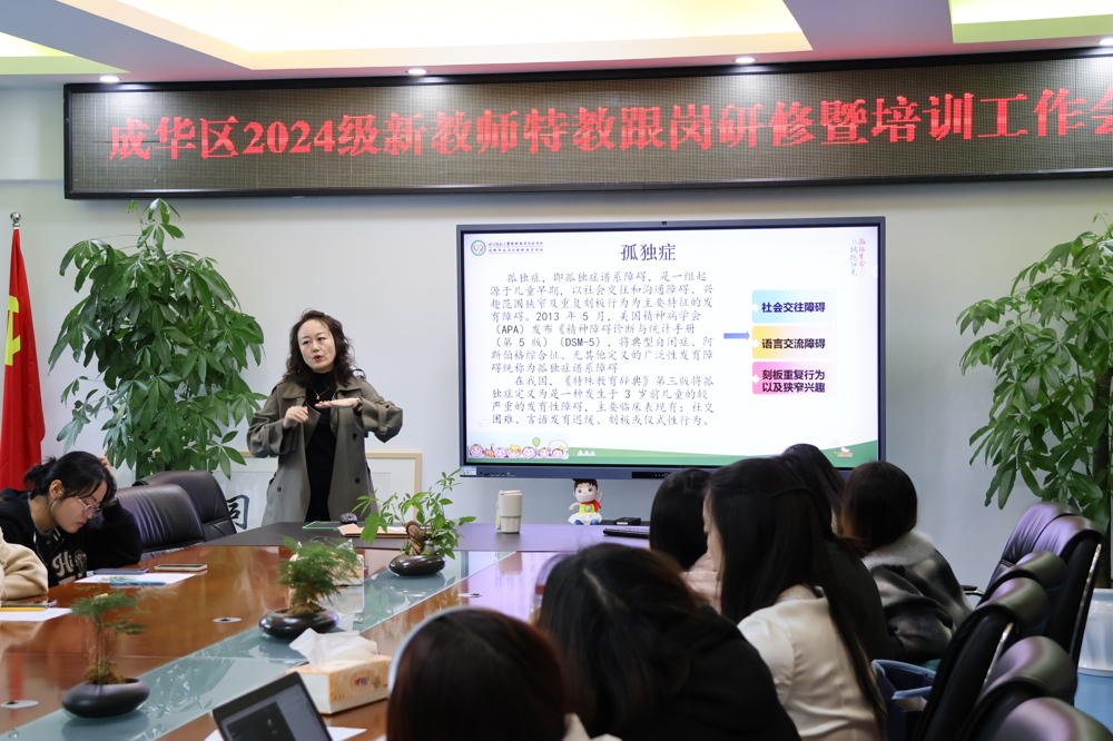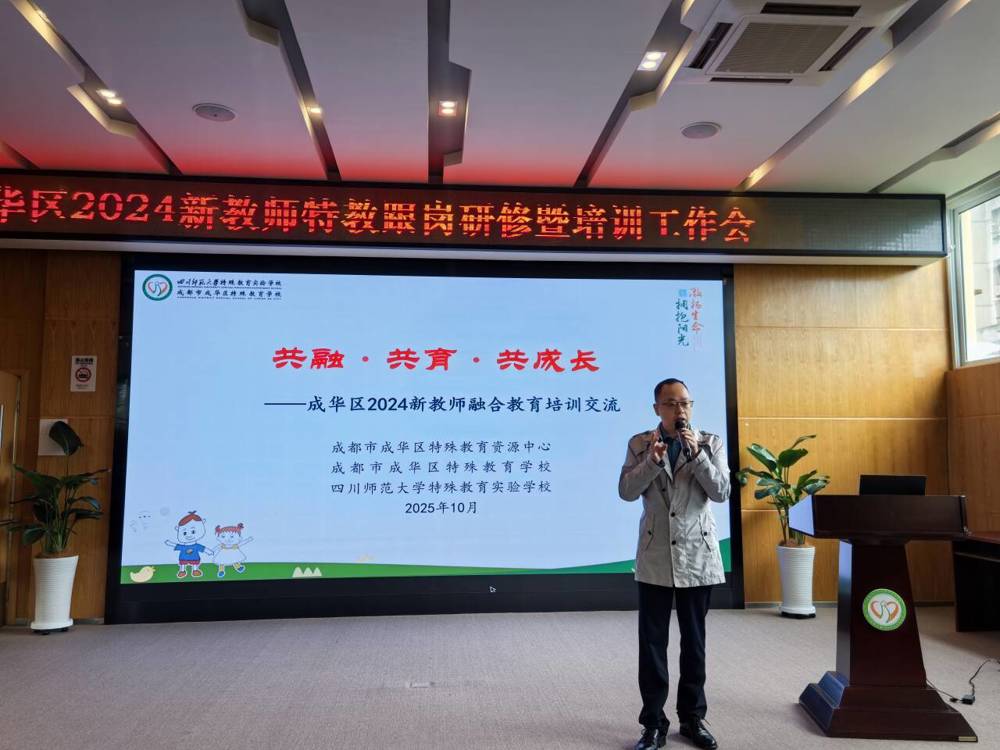 为贯彻党的二十大“强化特殊教育普惠发展”要求,切实提升区域教育优质均衡发展,推动融合教育理念向实践深度落地,2025年10月21日- 23日,成华区2024级新教师培训班一日跟岗研修活动走进成华特校,以小组轮流跟岗的形式,开启特殊教育研修之旅。