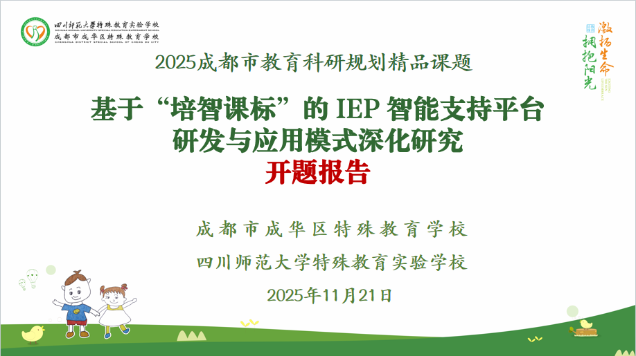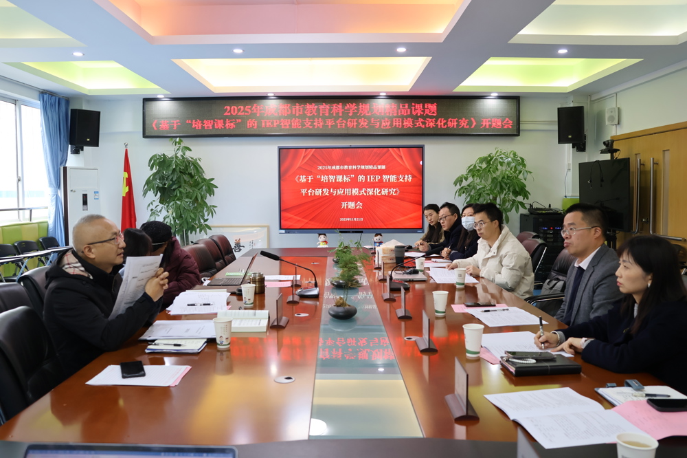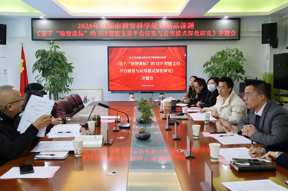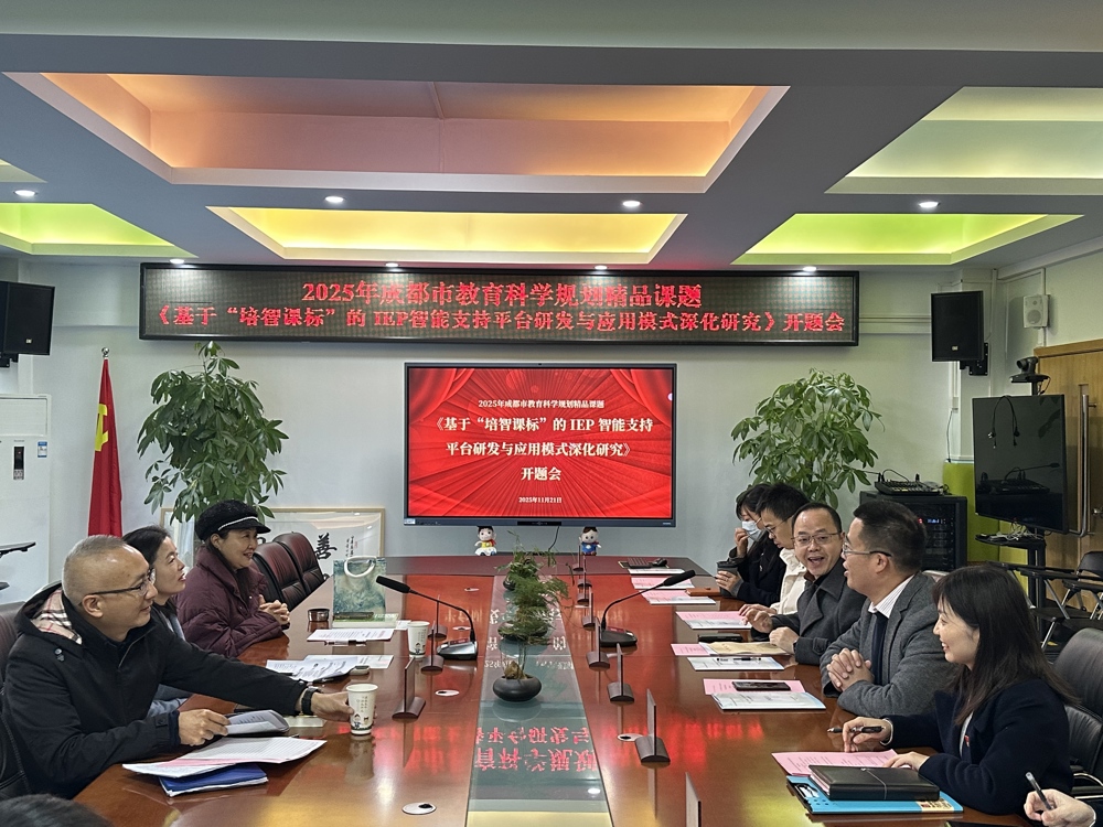 2025年11月21日,2025年度成都市教育科学规划精品课题《基于“培智课标”的IEP 智能支持平台研发与应用模式深化研究》开题会,在成都市成华区特殊教育学校顺利召开。
