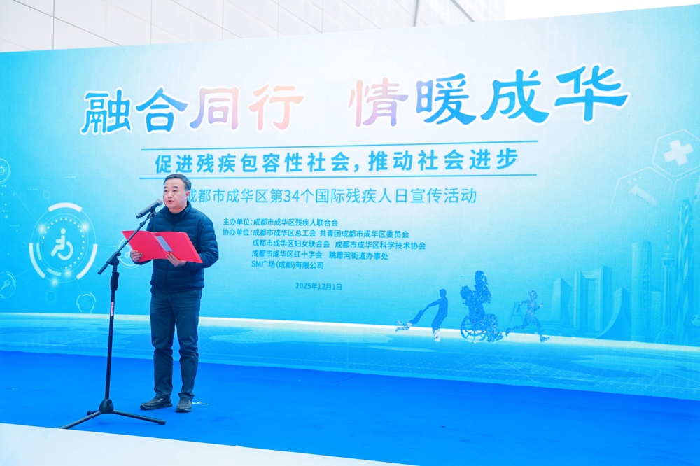 为积极营造扶残助残的浓厚社会氛围,倡导理解、尊重、关心、帮助残疾人的良好风尚,充分展示残疾人丰富多彩的精神文化生活,2025年12月1日上午,成华区残疾人联合会在SM广场举办了“融合同行·情暖成华”第34个国际残疾人日宣传活动。此次活动内容充实,形式多样,场内场外联动,为残疾人朋友搭建了展示才华的舞台,也为现场市民提供了了解与支持残疾人事业的窗口。