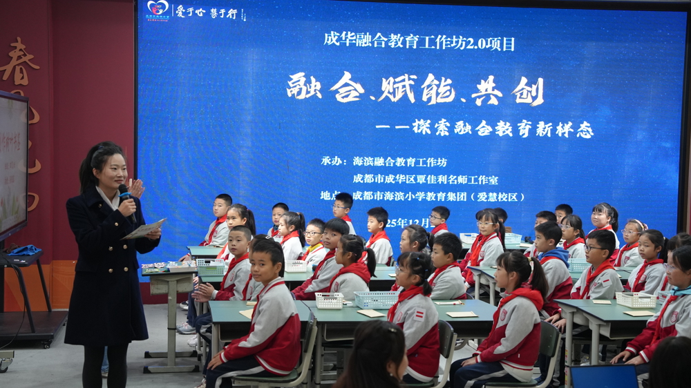 在第34个国际残疾人日来临之际,成华区覃佳利名师工作室联合成都市海滨小学融合教育工作坊,于12月2日举办以“融合•赋能•共创——构建工作坊融合教育新样态”为主题的成华区覃佳利名师工作室融合教育高品质开放活动。成都市特殊教育资源中心副主任先照勇,成华区政府特殊教育责任督学吴玉芹,郫都区特殊教育资源中心办公室主任周冬梅,工作室领衔人、成华区特殊教育学校副书记、副校长覃佳利,工作室成员及海滨小学融合教育工作坊成员、郫都区资源教师等参与活动,大家通过课堂观摩、经验分享、专家引领等形式,共探融合教育实践新路径。