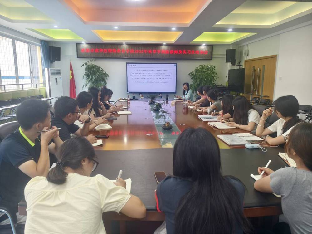 为助力实习生快速转换角色,适应岗位需求以及夯实专业教学能力,2025年8月25日-29日学校精心筹备了“笃学砺教 聚力启航”教师岗前培训活动。经验丰富的专家和骨干教师化身引路人,从学校办学理念、特殊学生学情特点,到分层教学方法、个别化辅导技巧,再到课堂安全规范、班级管理妙招,倾囊相授实用干货,引导实习生树立“以生为本”的特教理念,掌握特教课堂教学与班级管理的关键技能。副书记、副校长覃佳利具体介绍了学校出勤、纪律管理制度及教学管理要求;副校长李为苇分享德育、安全管理的制度建设;教育服务中心主任蒋新文则详细解读了学校的后勤安排与相关制度,为实习生的校园生活提供全方位指引。