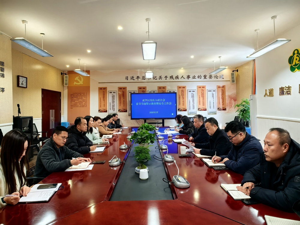 2026年春节临近,为深入落实全面从严治党主体责任,扎实做好节日期间廉政建设和安全保障工作,营造风清气正的节日氛围,2月13日下午,成华区残联召开春节节前警示教育暨安全工作会,部署节日期间相关工作。区残联党组书记、理事长唐海主持会议,全体干部职工参会。