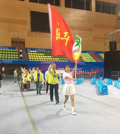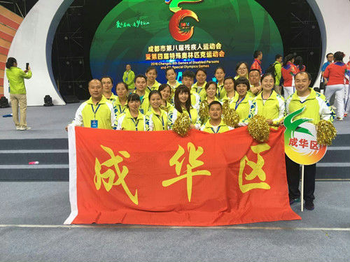 “拼搏奋发、耀我成华”开幕式入场口号整齐、响亮,充分展示了成华区残疾人团结奋斗、超越自我、勇争第一的体育精神和自强不息的精神风貌。截止目前,成华代表团在11个先期比赛中,分别斩获残运会射击、聋人女子乒乓球、聋人篮球、盲人象棋、聋人足球10金5银3铜;特奥会田径、乒乓球、羽毛球、足球11金4银5铜的好成绩,奖牌总数名列全市前茅。接下来的田径、坐式气排球等比赛项目,成华区有望取得更好的成绩。
