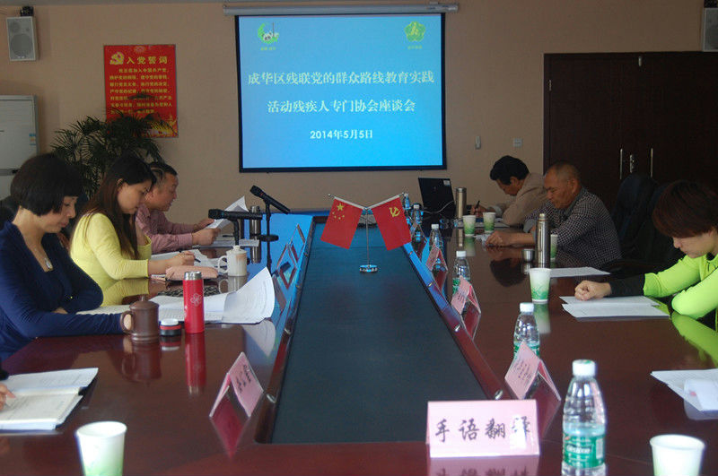 5月5日,为迎接成华区庆祝第二十四次全国助残日,结合当前开展的党的群众路线教育实践活动,区残联组织召开残疾人专门协会座谈