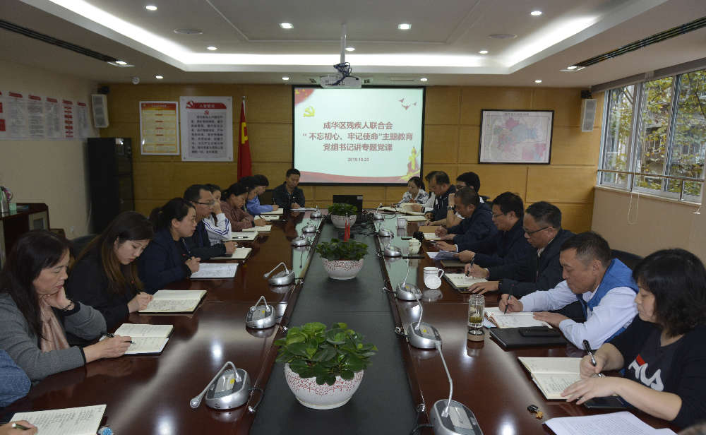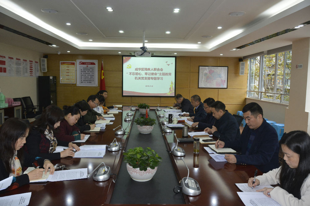 2019年11月19日下午,成都市成华区残联召开“不忘初心、牢记使命”主题教育专题学习会。区残联党组书记、理事长韦华,党